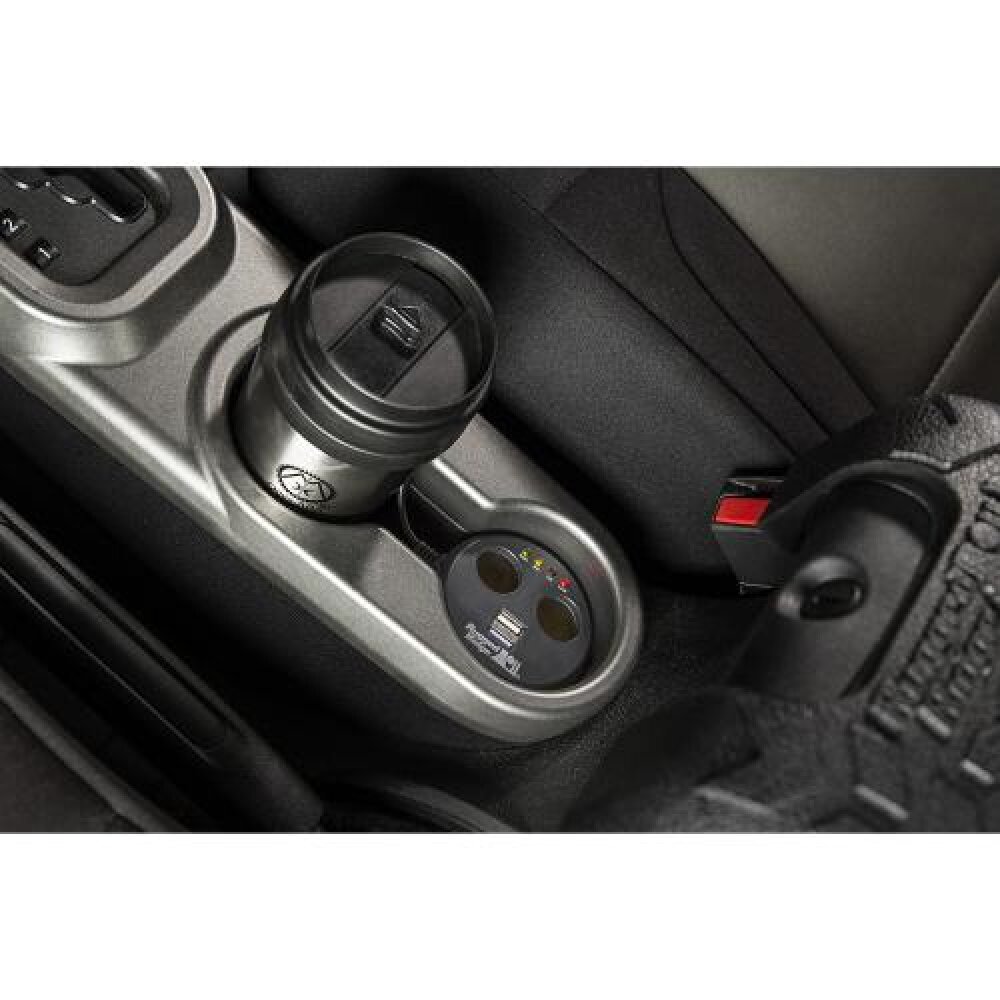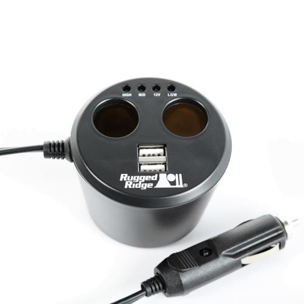 The Rugged Ridge Power Cup is the perfect electronic accessory for your Jeep, or any vehicle for that matter! Now you can have adequate power ports at the close convenience of your cup holder. Great for powering your smartphones, GPS devices, DVD players or anything else your needs might demand! Equipped with two USB ports for your phone charging cables and two additional DC sockets for powering entertainment systems, GPS/navigation devices, etc. Just plug the Power Cups 2-foot power cord into your vehicle's existing power port and place the cup securely in your vehicle's cup holder. The built-in DC power and amp indicator lights let you know the power status at a glance. Documentatie / Manuale utilizare